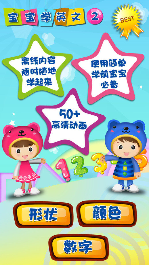 宝宝学英语收集了许多经典的英语早教儿歌,比如ABC字母歌数字歌颜色歌形状歌等,最基础的英语学习内容,配上精心绘制的卡通动画,让孩子在玩耍过程中不知不觉地就学会了令成人头痛不已的英语。