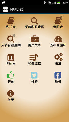 钢琴奶爸是一款灵活的带有用户库和反向模式的和弦/音阶辞典。让您可以按名称找到和弦或者音阶。