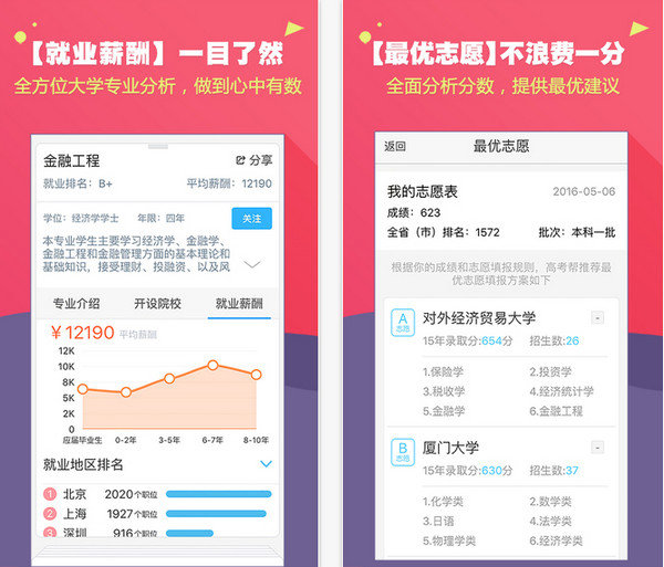 高考成绩查询app可以方便快捷地查找到大学和专业的信息,输入分数定位自己的成绩,还可以找个学长聊聊自己困惑的问题。