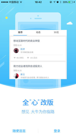 想见是一款中高端付费经验社交平台。全“心”改版,想见大牛为您指路。人性化操作界面,功能强大。有需要的盆友们,欢迎前来点击体验哦!