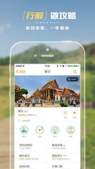 8000万旅游用户每天都在用的全球旅行神器 获得2014年AppStore精品出行必备APP推荐 覆盖全球65000+海量目的地攻略和精华旅行游记 酒店、机票、签证、自由行产品尽在旅游攻略