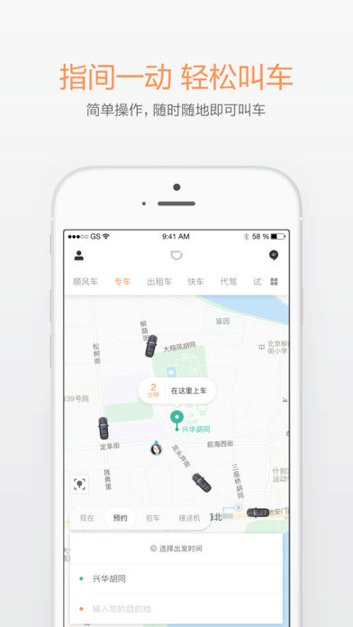 『滴滴出租车』随时一键叫车,出租车师傅会在您需要的地方,出现并微笑