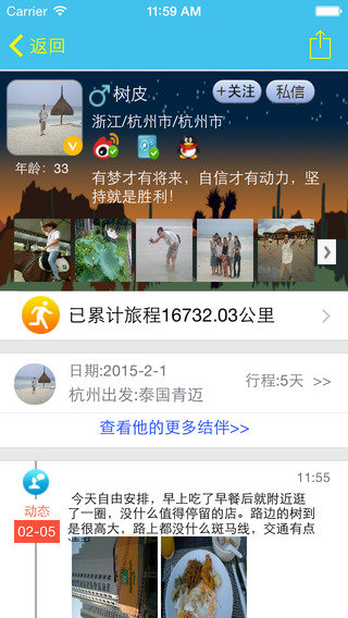 6、随时交流:好友、粉丝、私信即时沟通,让旅途随时结伴。