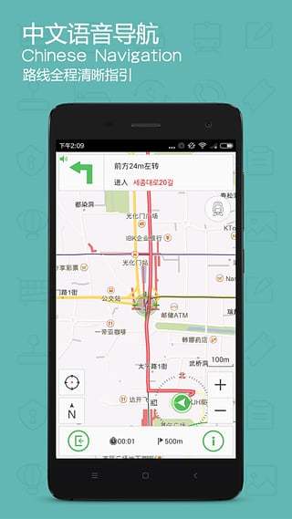旅鸟韩国地图通过精准的GPS定位,中文语音播报,为用户行进方向引导,对路口、转弯给予清晰导航指引。