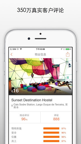 使用旅舍世界Hostelworld应用可预订全球3.5万旅舍的宿舍床位或独立房间,体验分享式入住或享受独立入住的隐私保护。如时尚之都巴黎设计感强烈的旅舍,入住时尚中心;布达佩斯古朴庄严的聚会旅舍,感受城市的热情;或是阿姆斯特丹设计独到的环保旅舍,陶醉在各类新式建筑之中。一颗好奇的心与勇于探索的心将带你走遍世界,旅舍世界Hostelworld应用也将以经济的价格永远陪伴左右。