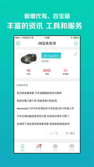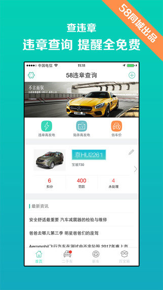 58违章查询由58同城出品,免费车辆违章查询,是8000万车友出行必备手机APP!支持全国300多个城市违章查询服务,方便您随时随地查询车辆违章情况!