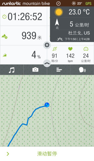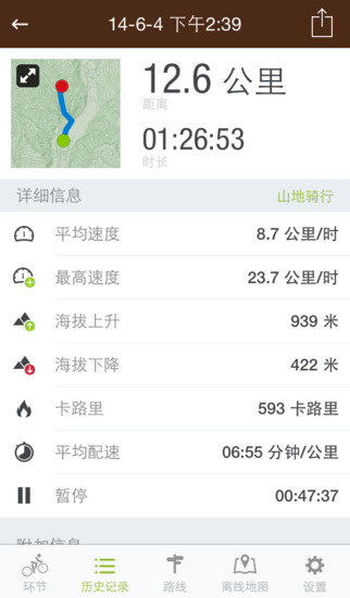 -通过GPS来追踪山地车骑行的行程:时长、距离、海拔升高、配速、消耗的卡路里等