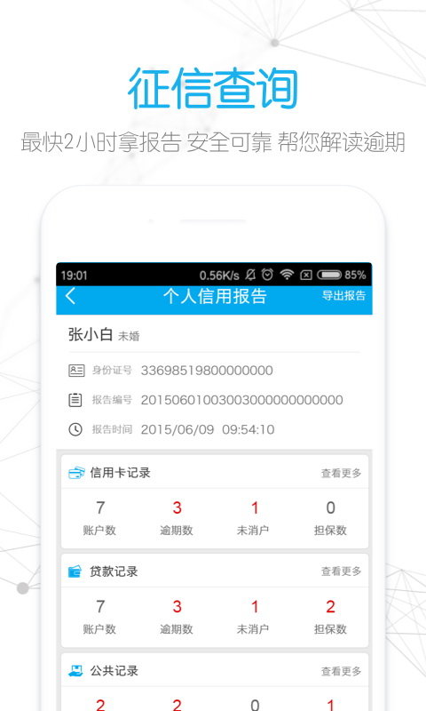 2、征信服务:通过大数据分析技术智能匹配您的征信。