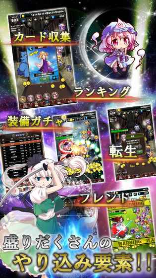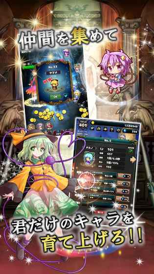 *+*+*+*+*+*+*+*+*+*+*+*+*+*+*+*+*+*+*+*+*+*【ストーリー】その日、幻想郷が支配された──モンスターの大群、次々に暴走する住人たち。絶望の中、立ち上がった一人の少女。幻想郷の運命をかけた戦いが今、始まる──*+*+*+*+*+*+*+*+*+*+*+*+*+*+*+*+*+*+*+*+*+*【システム】画面をタップしてモンスターを攻撃しよう!仲間を集めて、君だけのキャラを育て上げろ!ボスカード収集、ランキング、装備ガチャ、フレンド等やりこみ要素も盛りだくさん!ゲームを終了している間もコインが稼げる。課金要素は一切なし、更にオフライン環境でも遊べちゃう。タップして楽しい、放置して楽しい!さぁ、あなたの指で幻想郷を救い出せ──!*+*+*+*+*+*+*+*+*+*+*+*+*+*+*+*+*+*+*+*+*+*【遊び方】遊び方はとっても簡単!?画面のタップでモンスターにダメージ!?ダメージを与えてコインをGETしよう!?コインを使ってレベルをアップ!?どんどんステージを進めていこう!!*+*+*+*+*+*+*+*+*+*+*+*+*+*+*+*+*+*+*+*+*+*【こんな人に特にオススメ!】?東方projectが大好き!?旧作から最新の天空璋まで網羅してて欲しい?クリッカー、放置、育成ゲームが好き?息抜き、暇潰しゲームを探している?課金要素のない完全無料のゲームを探している?コレクション?育成等、やりこみ要素のあるゲームが好き?タブレット、オフライン対応のゲームを探している?実況?配信OKのゲームを探している(許可無しでどうぞ!大歓迎です。)*+*+*+*+*+*+*+*+*+*+*+*+*+*+*+*+*+*+*+*+*+*【注記?補足】本アプリは「上海アリス幻樂団」様の制作による「東方Project」の二次創作ゲームです。キャラクター、世界観、原曲BGMの著作権は、全て制作元である「上海アリス幻樂団」様、およびZUN様に帰属します。*+*+*+*+*+*+*+*+*+*+*+*+*+*+*+*+*+*+*+*+*+*【Twitter公式アカウント】https://twitter.com/plu_plus最新作やゲーム開発情報を発信しています。不具合報告や要望などもお気軽にどうぞ!*+*+*+*+*+*+*+*+*+*+*+*+*+*+*+*+*+*+*+*+*+*【スペシャルサンクス】?原作者上海アリス幻樂団様http://www6.big.or.jp/~zun/?アイコン宿雪様https://www.pixiv.net/member.php?id=4212583?ドット絵キャラDMF別館アイコン素材屋様http://deepmoon.sakura.ne.jp/icon/?立ち絵キャラはるか様、ウボア様、ダイリ様http://seiga.nicovideo.jp/user/illust/3494232?SDキャラりょうご様http://p-lux.net/?敵キャラゆるドラシル様http://yurudora.com/tkool/?BGM四十九葉杳様https://twitter.com/Sq7Y498?ボイス小塚菖様