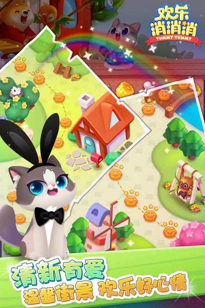 《欢乐消消消》是一款休闲消除手游,在传统消除游戏玩法的基础上,加入萌宠收集,更有百变宠物时装,酷炫来袭,创新性的将传统消除游戏与养成融合在一起,打造另类消除手游,给你带来不一样的置换消除新体验。