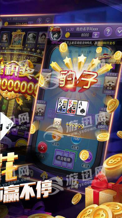 全民夺宝电玩城游戏画面精致,玩法丰富有趣,经典的炸金花游戏玩法带给玩家无限刺激的感觉,疯狂的看牌可以轻松的赢取海量的金币,现在起登录游戏,每天都有精彩的奖励等你来拿哦。