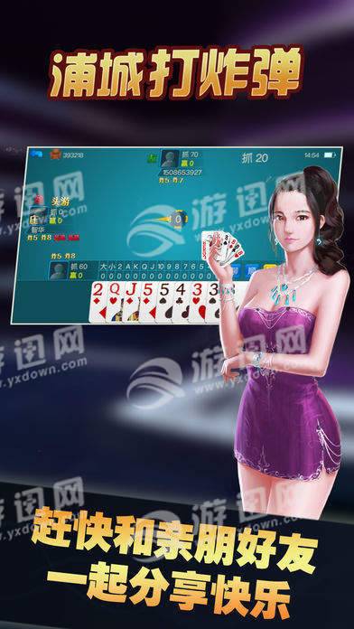 浦城王炸是一款根据浦城当地玩家十分喜爱的打炸弹玩法设计的手机棋牌游戏,游戏支持微信互动,玩家可以和你的熟人朋友一起在手机上玩打炸弹,一起分享欢乐!