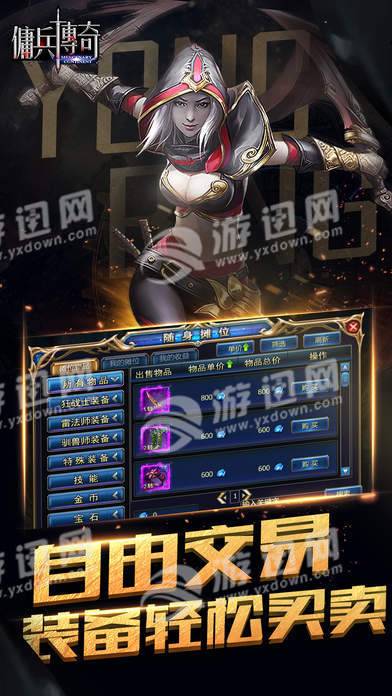 佣兵传奇是一款主打pk竞技的RPG手游,游戏技能华丽酷炫,打击感十足,玩家可以自由的编辑技能连招。游戏内的所有装备都可以自由交易,玩家可以自由的购买自己所需要的物品,轻松提升自己的战斗力。
