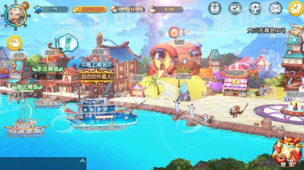 你作为一名有伟大理想的船长,不光要通过捕鱼、买卖商品赚取资金换取水手