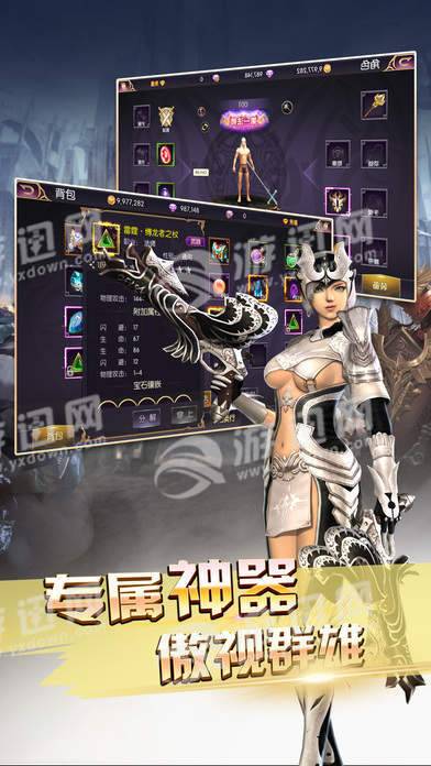 2、稀有神装唾手可得,同名装备,不同外观,天使华丽翅膀,恶魔暗黑翅膀,精灵流光翅膀,不同职业,体验不同绚丽;