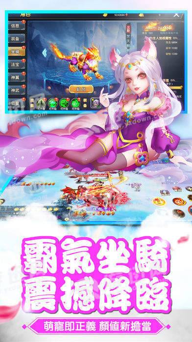 2.精美画面效果,丰富的剧情,独特的修仙风格,无敌萌宠,霸气战阵,酷炫神兵。