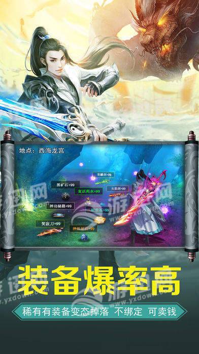 1.挂机玩法,升级简单快速,挂机还有机会获得极品神装哦。