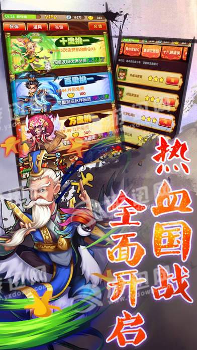 三国名将各有特色,神兵专属助力破敌。勇如吕布,智如诸葛,尽待主公招募,助你成就千秋之业。面对强敌,看似毫无胜算,若能窥得敌方弱点,以大智佈阵组将,鹿死谁手,尤未可知。