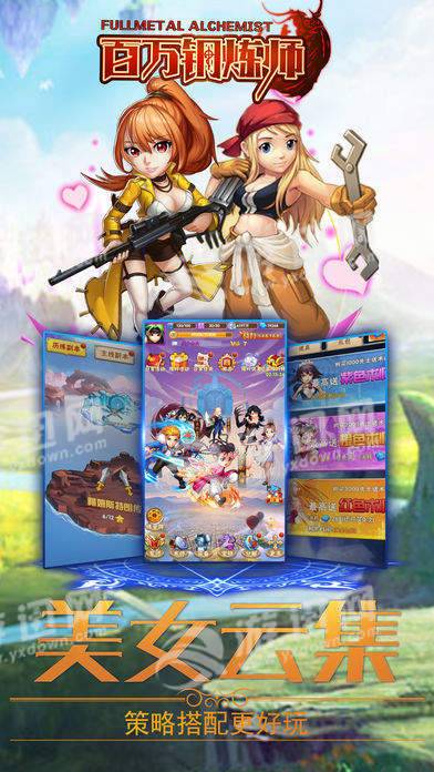 百万钢炼师是一款以全新形象展现的卡牌手游,游戏内拥有众多的美女,每个美女都有自己独特的性格哦,并且将会与她们展开爆笑的对话,游戏更有特色的策略搭配玩法等你来体验哦。