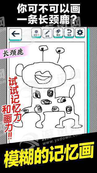 模糊的记忆画猜谜是一款拥有海量魔性题目和画面风格的教育休闲游戏,玩家在游戏之中需要根据不同的题目,来绘制出相应的图片,展现你魔性的绘画风格时候到了!