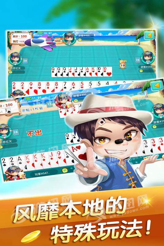 2、智能选牌,人性化操作,满屏特效,精简布局。