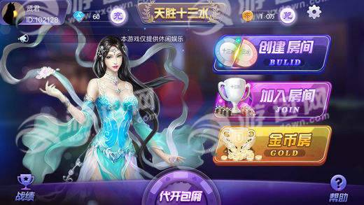 天胜拾叁水是一款以十三水扑克玩法为主的棋牌类手机游戏,玩家可以在这里与其他玩家一起同场PK,感兴趣的玩家快来下载游戏试玩吧!