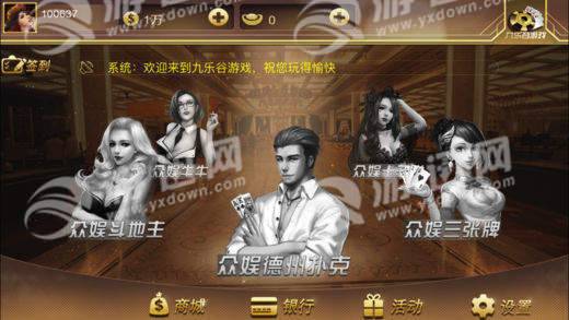 九乐谷是一款精心打造的专业的棋牌游戏平台,游戏以独特的账号注册的方式,给玩家带来了极度安全的游戏环境,简单的游戏操作让每个玩家都能够迅速的适应游戏,刺激好玩的真人竞技更是能够带给你更加真实的感觉。