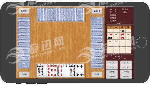 自战模式:可对打牌过程进行复习和训练。具备手动发牌、桥牌打谱功能,可以保存自己输入的牌例和打牌过程,随时欣赏。