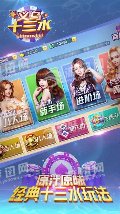 义乌十三水是一款能够让玩家轻松畅玩的棋牌游戏,经典的十三水的游戏玩法深受广大玩家的喜爱,简洁的游戏画面清晰的展示出了每一个细节,并且拥有丰富的场次分类等你来战。