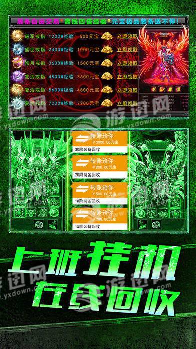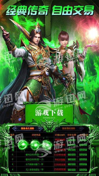 3.超激情打宝体验,全民送宝,极品装备、珍稀道具,自由交易随心所欲。