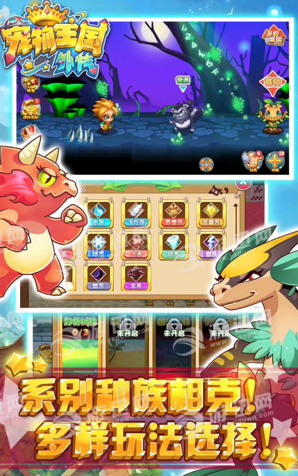 宠物王国外传是一款非常经典的回合制RPG手游,游戏拥有数百种宠物等待你的收集,每个宠物都需要单独的养成和培养,玩家还可以把宠物合体繁育打造出超强的宠物哦。