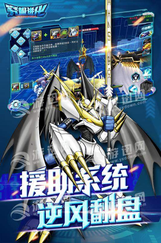 究极进化疯趣版游戏采用了顶级的制作技术,给玩家展示了一个超清的游戏巨制,动态的全景战斗更是让每个玩家感受到不一样的刺激感觉,每个进入游戏的玩法都仿佛置身在真实的数码宝贝世界。