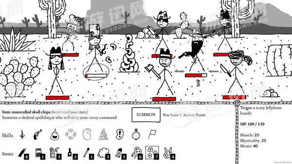 离开你的家庭农场到西部寻找你的财富!穿过蛇形峡谷,打败穿牛仔帽的骷髅,与恶牛战斗,并调查各种恶心的痰盂(确实很恶心)。你会遇到“色彩缤纷”的人物角色,其中一些是好的,一些是坏的,还有一些是长得丑陋的。