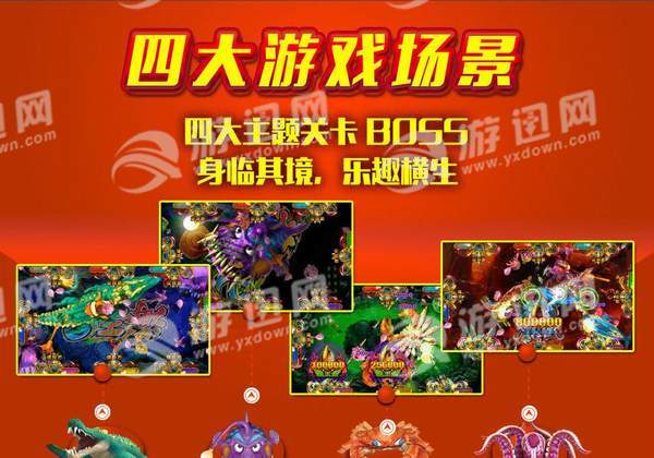 游戏采用最新3D高清画面,新增加四大游戏场景-暗夜巨兽-史前巨鳄-深海八爪鱼-霸王蟹,继承1代经典玩法,连锁闪电-霸王鲸-万王巨龙,的基础上新融入”钻头炮”“连环炸弹蟹”“烈焰风暴”等新功能玩法,尤其免费送分游戏的独立场景—决战黄金城,更是精彩刺激,备受玩家追捧。