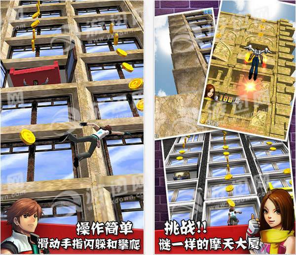 疯狂攀岩家安卓版PocketClimber是一款好玩的跑酷游戏,游戏中,玩家需要操控人物不断躲避障碍跳跃到大厦的顶端。神秘房客高空坠物,冰箱、沙发、柜子擦肩而过,愤怒的大猩猩“金刚”在高空等待着你,晒被子的大妈也是危险人物。