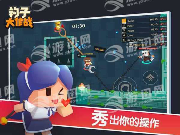 钩子大作战是一款以钩子为主要的题材开发的休闲游戏,双方都将会用钩子进行战斗,这款游戏既考验玩家使用钩子的准确度,也非常考验玩家的意识与身法,快与你的小伙伴开启一场别开生面的战斗吧。