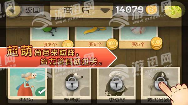 3、收集金币、香蕉等道具,提升老奶奶的能力值