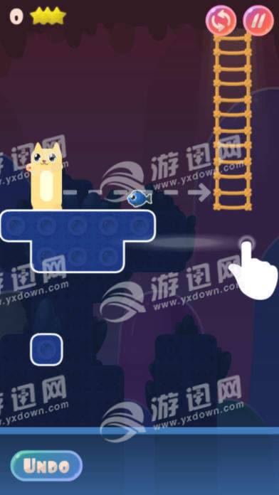 会变长的小猫咪来了~你需要帮助小猫咪吃掉所有的鱼,并且回到梯子上面~注意,这只小猫可以拉长,快来试试看吧!