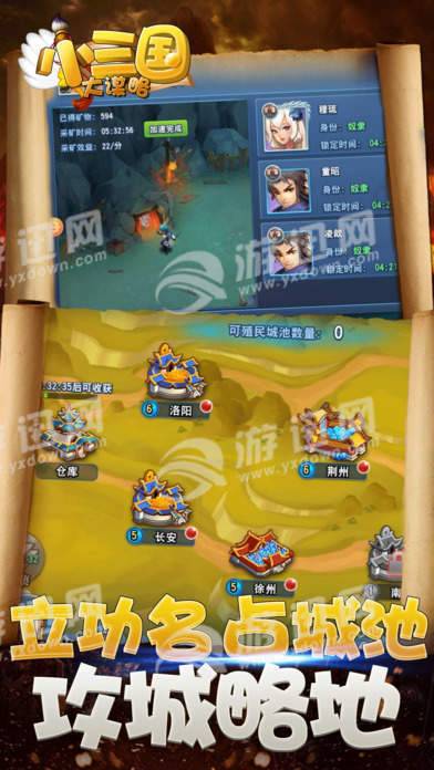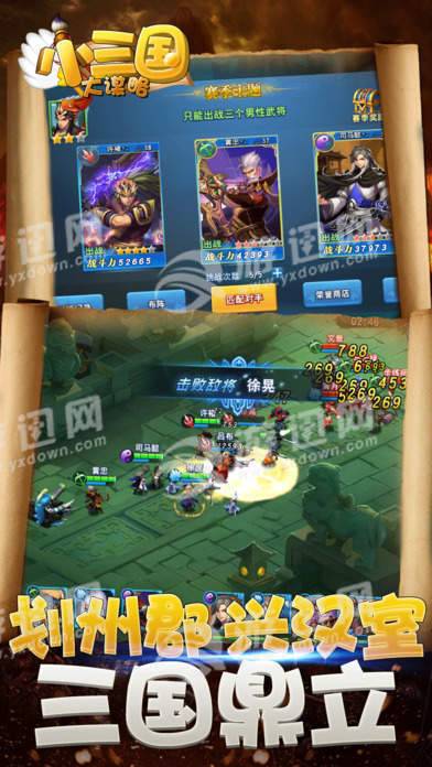 小兵大将,军团冲锋:自由搭配三国名将和猛将、神射、军师多个兵种,组成最强军团,阵型移动变化多端,冲锋陷阵热血无限。