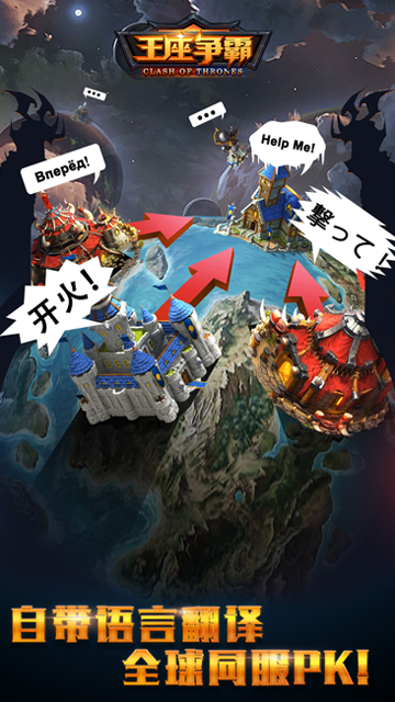 王座之争,注定是一场血雨腥风的乱世角逐,不分区域,不分国家,只要站在这一方天空之下,那便是拥有胜者为王的的机会!《王座争霸》开启宏大的“全球同服”模式,为来自全球数亿玩家造就最直接刺激的王座征战。荆棘丛生的王座之争,不再是国内玩家的争夺内战,而是全球玩家的巅峰对决!