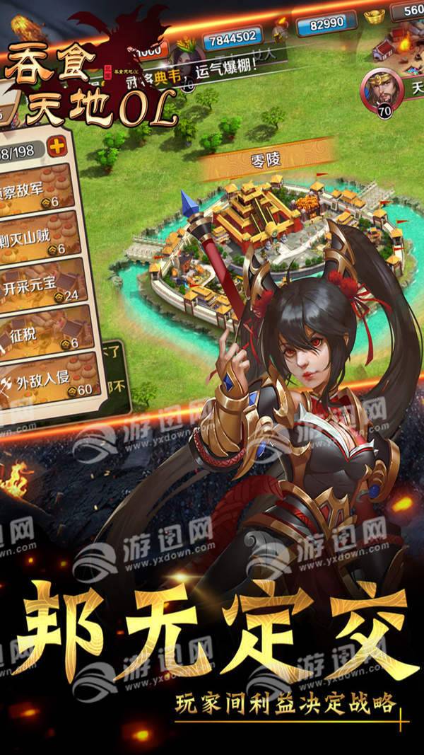 吞食天地OL变态版是一款以三国乱世为背景开发的策略手游,游戏玩法丰富,玩家可以自由的募集名将,发展自己的军团,与不同的对手战斗,最终实现自己一统三国的伟大理想。