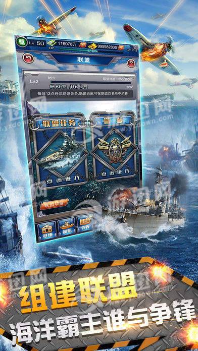 2、二战重现,二战著名战役地点复原。 以真实战舰、剧情为蓝本,构造游戏副本,让玩家体会经典战役,战舰威力。