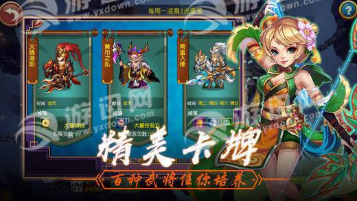 5大兵种,20大兵系,三英和吕布为你马首是瞻。步克枪,枪克弓,弓克骑,骑克攻城,攻城克步,兵种克制布阵多样。武将培养,装备加持,武将连携,让你的武将产生质的飞跃。