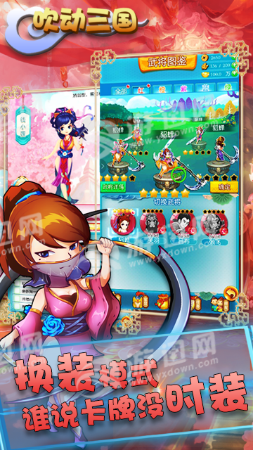 吹动三国是一款主打三国题材的策略卡牌手游新作,游戏拥有全新的动作战斗元素,可以吹的三国手游!继承了经典卡牌收集和养成的核心玩法模式,同时加入了更多的休闲趣味玩法,和后宫佳丽三千谈一场恋爱,或者是随时换装,在战场上拉风全场!
