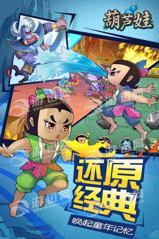 葫芦娃是一款全新推出的横版风格的策略卡牌手游,游戏以儿时童年经典《葫芦娃》国产动画为蓝本,打造出了一个庞大热血的葫芦娃世界,你可以在这里招募个性化的葫芦娃角色,探索庞大的地图,挑战BOSS!