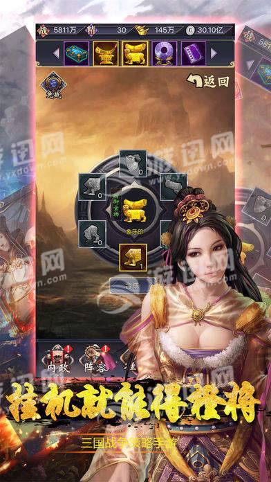 征战天下或者独守一方,一切您说了算!与人战,与城争,攻城掠池,还是休养生息,一切皆有你做主,既能满足众乐乐的需求,又能满足独乐乐的需要,内政+军事+计策,游戏中,您穿越至三国时期,扮演一方诸侯,招兵买马,发展内政、扩张势力,最终吞并天下。