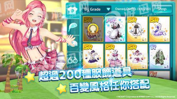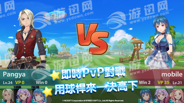 许多具有不同专长的角色、服饰与球杆供选择。除了让外观更亮眼之外,还可以自行选择、搭配针对不同场地的能力,让您成为该球场的王者!