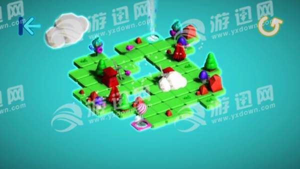 【绿色草原】 小梦古可以跟着风车吹的方向移动,不过请小心不要被吹到错误的道路或者红色针叶树上