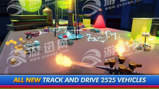 玩家除了需要掌握驾驶技巧进行漂移加速外,还需要拾取赛道中随机出现的各种工具与对手进行乱斗对抗,使游戏充满浓烈火药味的同时更增添了几分趣味性。