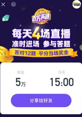 1、每天下午1点、晚8点两场答题比赛,每场12道题,全部答对的人平分当场奖金,每场奖金几万到几千万不等。